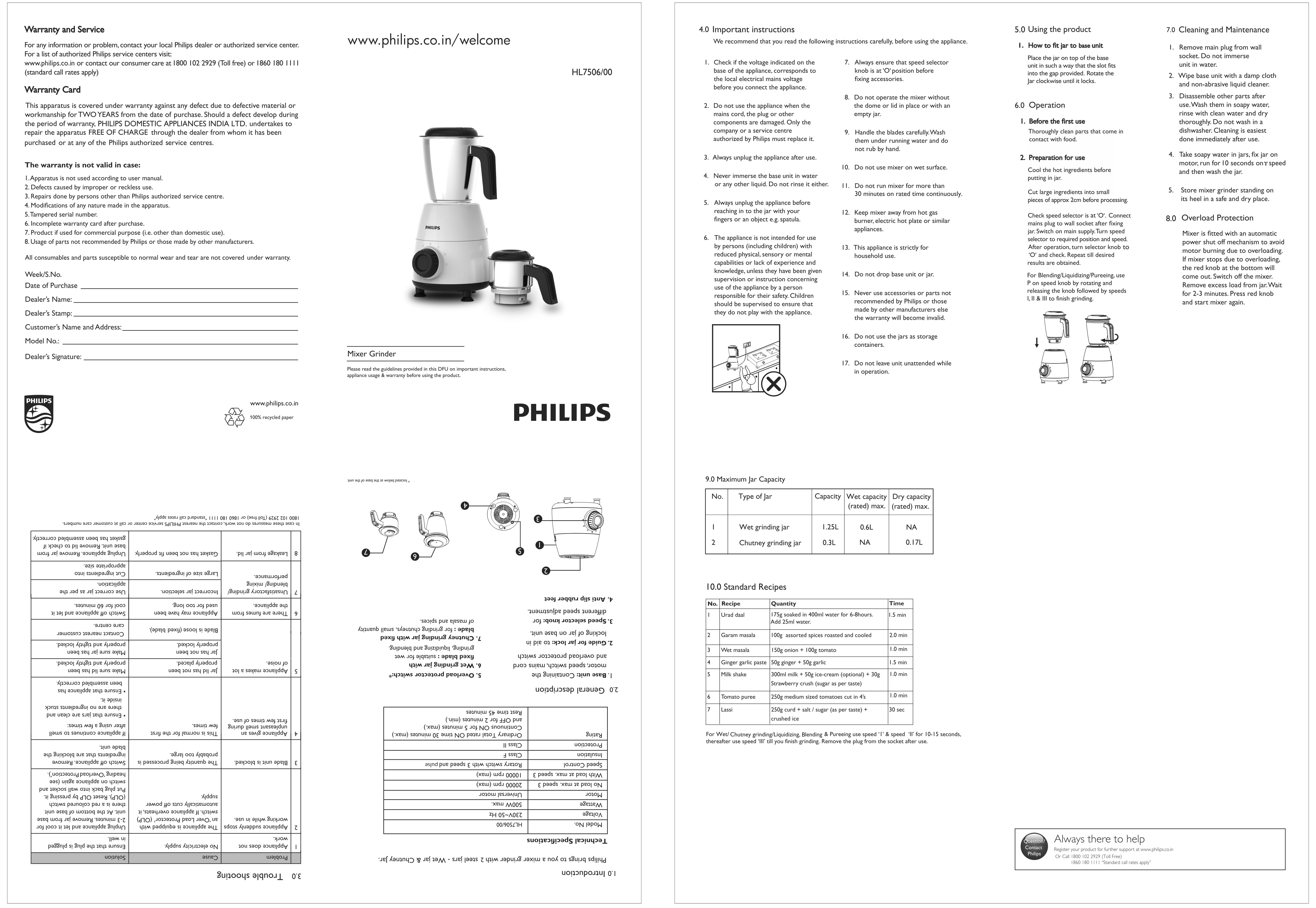 HL7506/00 Daily Collection Mixer Grinder